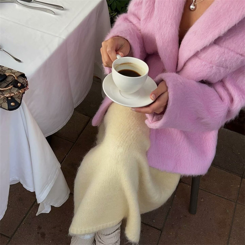 This gold-style woolen blazer features a high-end design with a loose, thickened construction, offering both warmth and sophisticated fashion. The mid-length silhouette provides coverage and elegance, while the soft woolen fabric ensures comfort and durability.