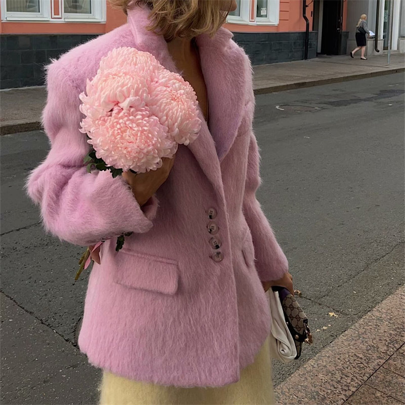 Perfect for professional settings, casual outings, or layered winter styling, this blazer combines classic tailoring with modern design elements. Its versatile color and luxurious texture make it a standout piece in any wardrobe.