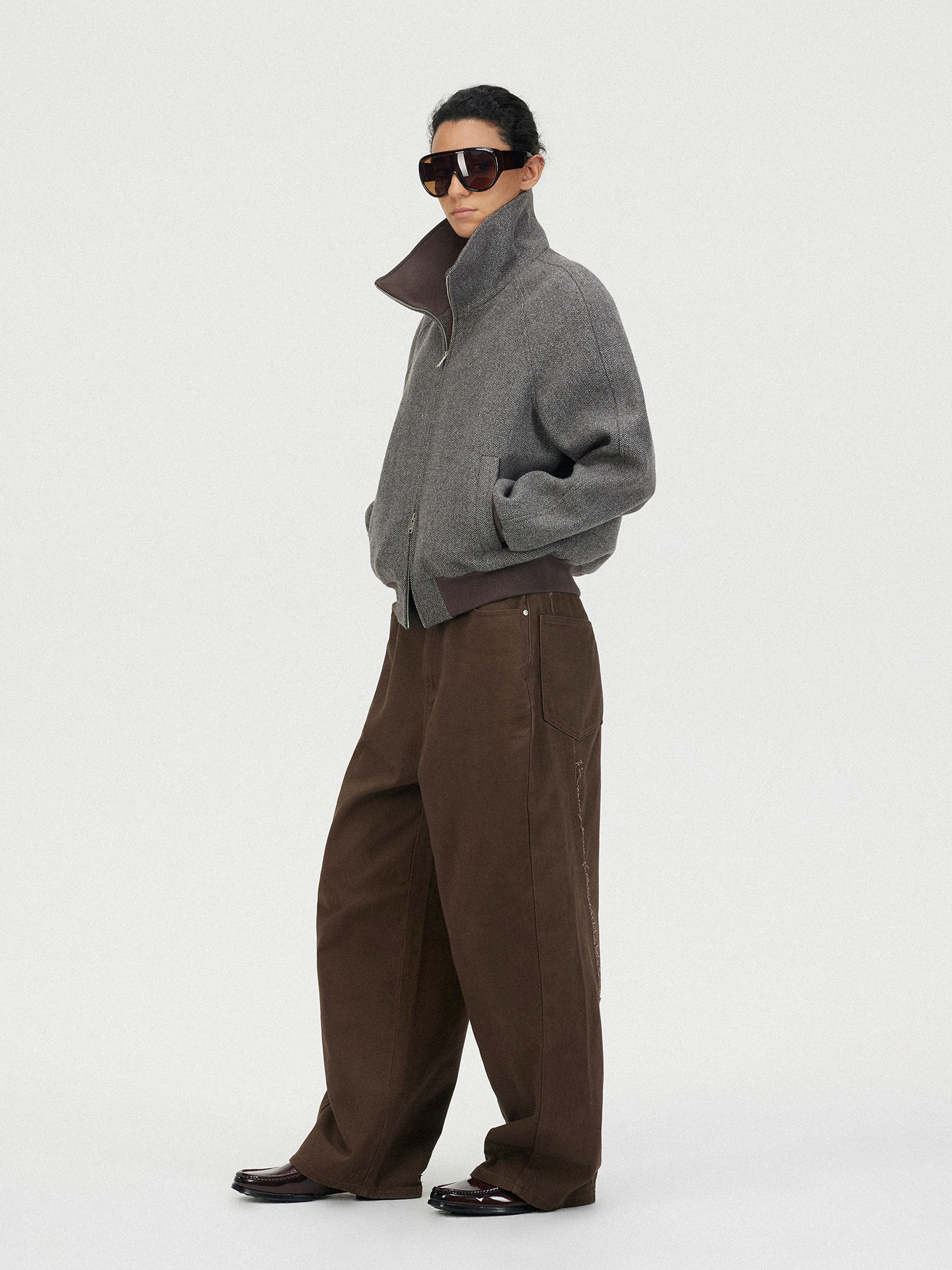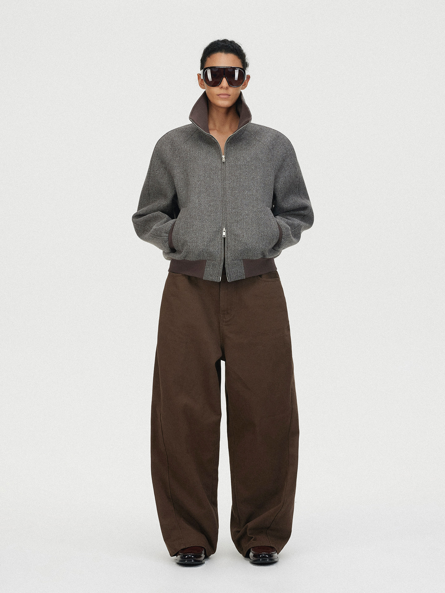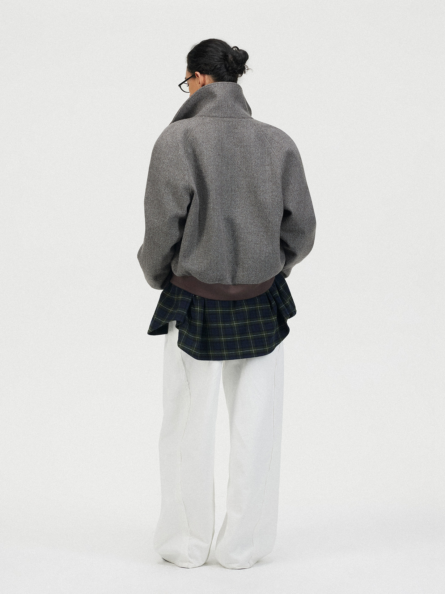 Xmzty | Herringbone Wool High-Collar Curved Shoulder Jacket